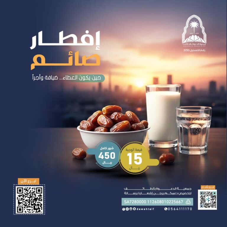 وتؤكد الجمعية أن المساهمة في هذا المشروع تمثل باباً عظيماً من أبواب الخير، إذ يجتمع فيها أجر تفطير الصائم وأجر التعليم، وهو أجر يتضاعف في هذا الشهر المبارك بإذن الله.